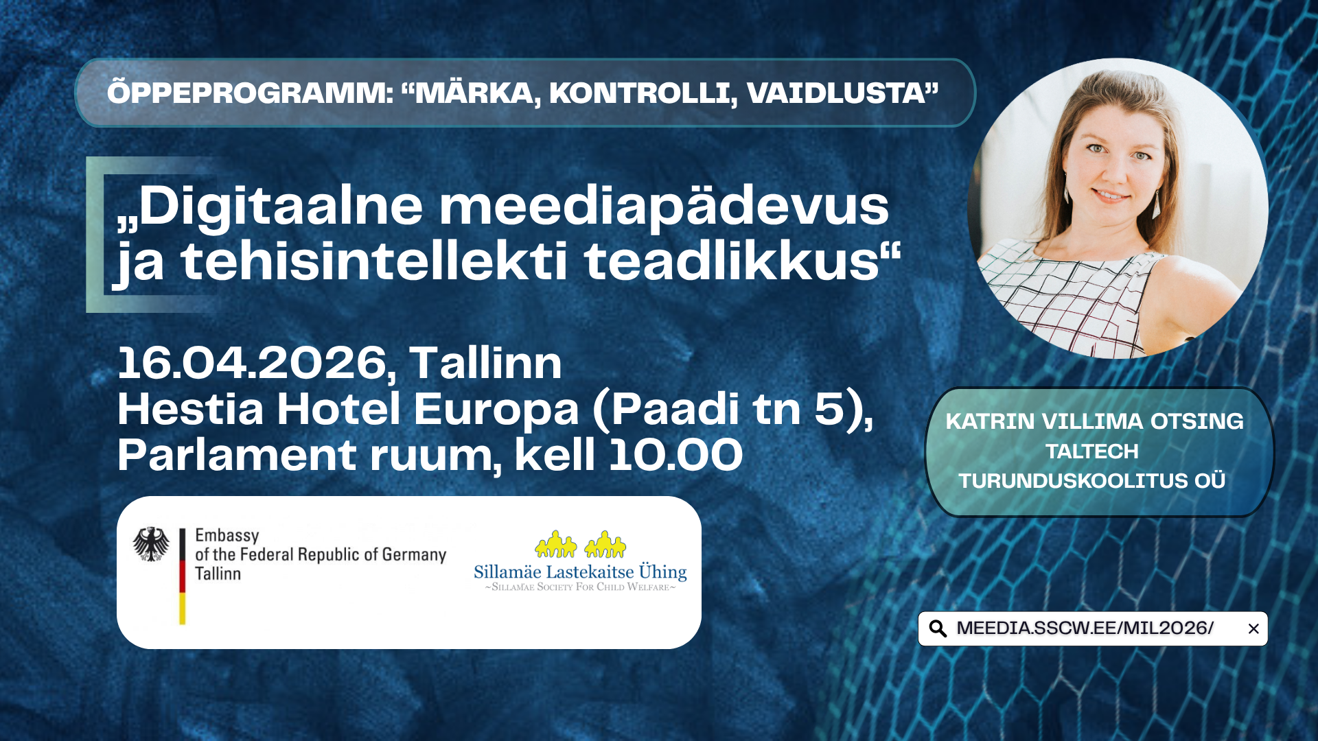 2026 aasta kevadel käivitub täiendõppe programm „Märka, kontrolli, vaidlusta: meediapädevuse ja vastupanuvõime programm“, mis on suunatud õpetajatele ja haridusvaldkonna spetsialistidele ning vabaühenduste juhtidele.